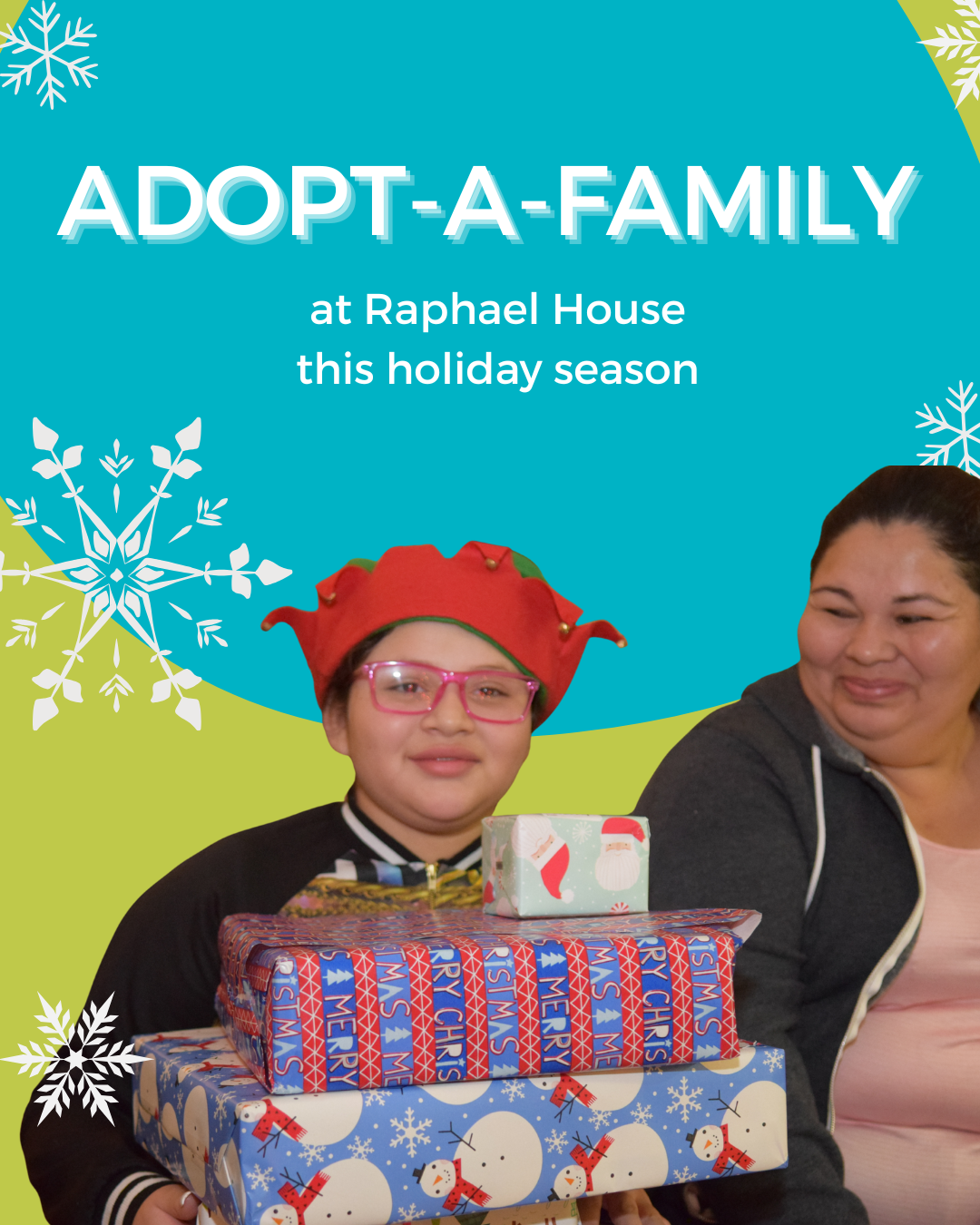 Since 1989, Raphael House’s Adopt-a-Family Program has matched our generous community members with families who are experiencing or at risk of homelessness. This annual tradition brings holiday warmth and joy to families in need.