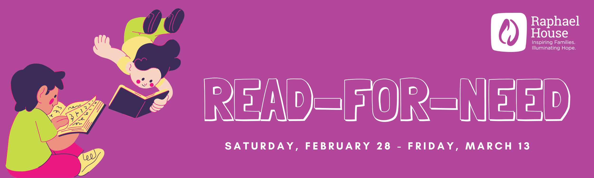 Our Read-For-Need fundraiser provides the Raphael House community with fun reading activities while supporting Raphael House, a shelter for families experiencing homelessness in San Francisco. All pledges from our Read-For-Need fundraiser support Raphael House programs and operations that provide shelter and supportive services to families experiencing homelessness.